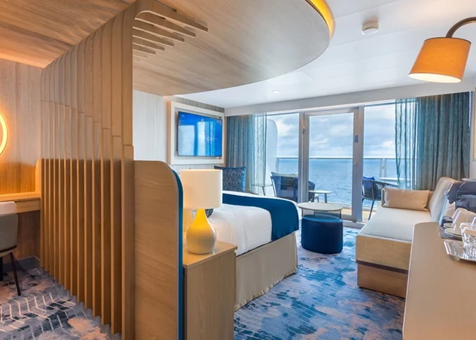 I1 - Kajuta Infinite Ocean View 23 m² (vrátane 4,5 m² verandy Infinite s výhľadom na more). 9,10,11. paluba. Max 4 osoby. 9 576 € 2 394 € za osobu
